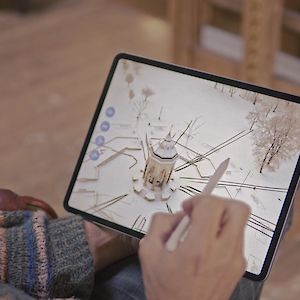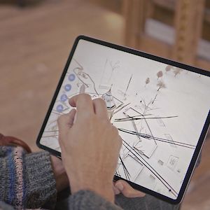 The outcome: Traits is an application for sketching onto video footage. This is made possible by real-time creative compositing, a technique we have developed to combine the simplicity of 2D hand sketching with the visual appeal of video rendering. This makes collaborative design possible with anyone and for any spaces which can be filmed.